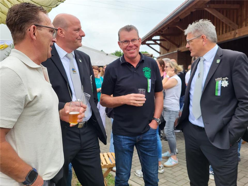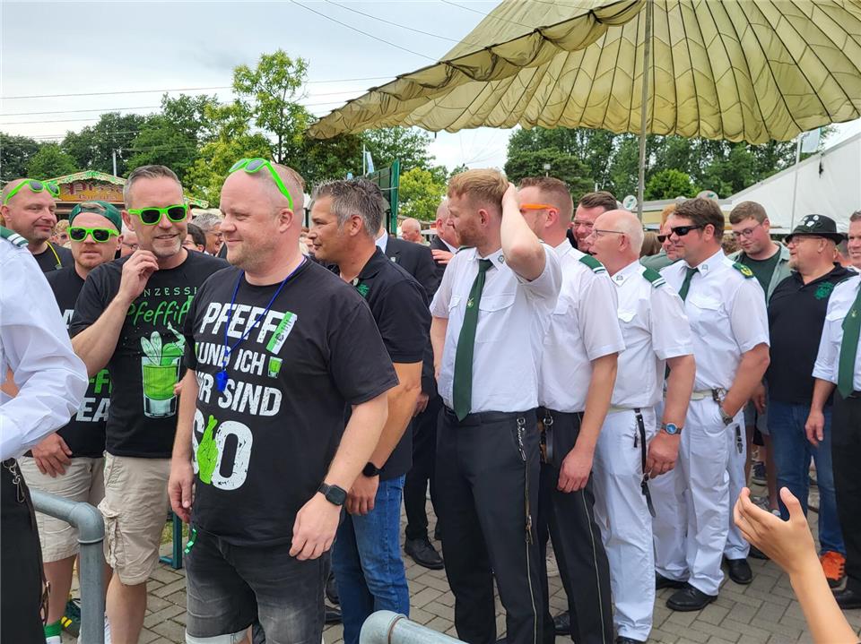 Schon in der Schießpause bekannten sich mit Markus Lansmann und Ben Robers gleich zwei Anwärter um die Königswürde. „Seitdem die Könige ins Zelt einziehen, wollte ich König werden“, erzählte Lansmann und ergänzte: „Die Gemeinschaft hat mich überzeugt.“ Robers ist erst 21 Jahre alt und versuchte bereits zum dritten Mal, den Vogel abzuschießen. „Heute stehe ich hier zum letzten Mal“, war er überzeugt. Auf die Frage, ob er es dann nicht mehr versuchen würde, antwortete er selbstbewusst: „Nee, klappt ja!“