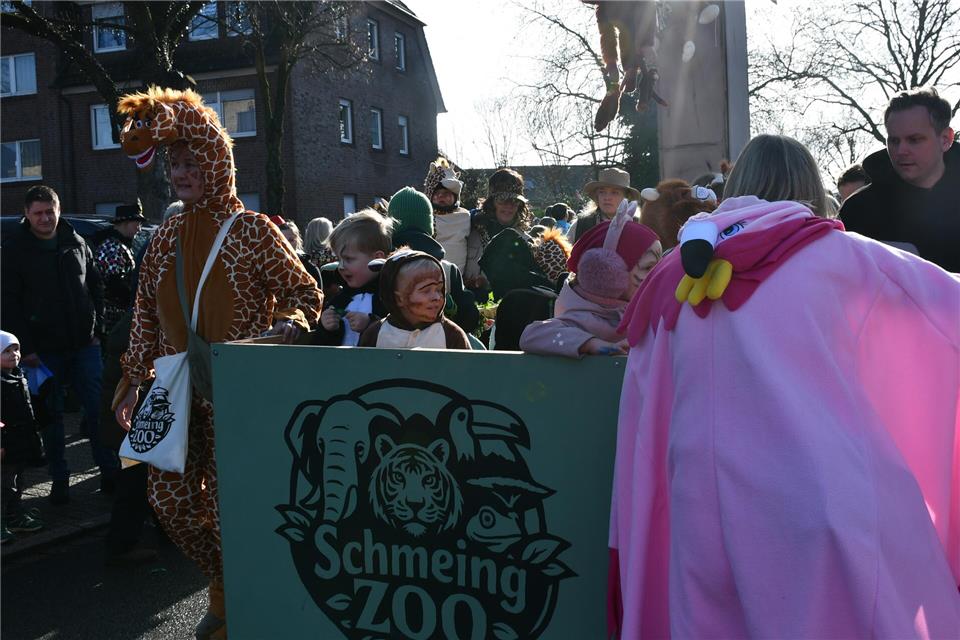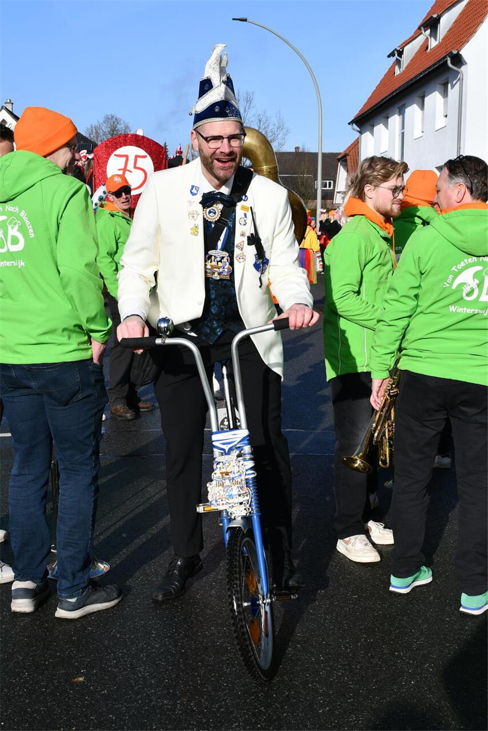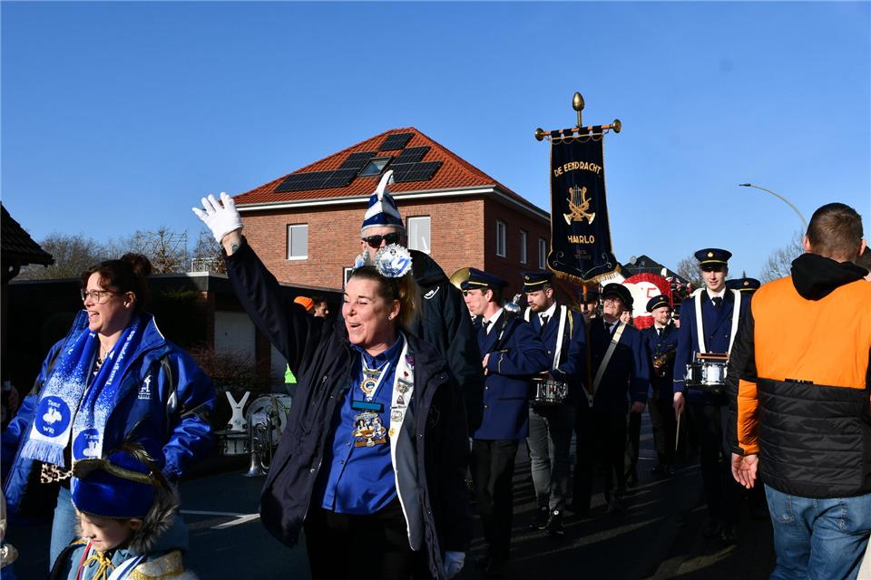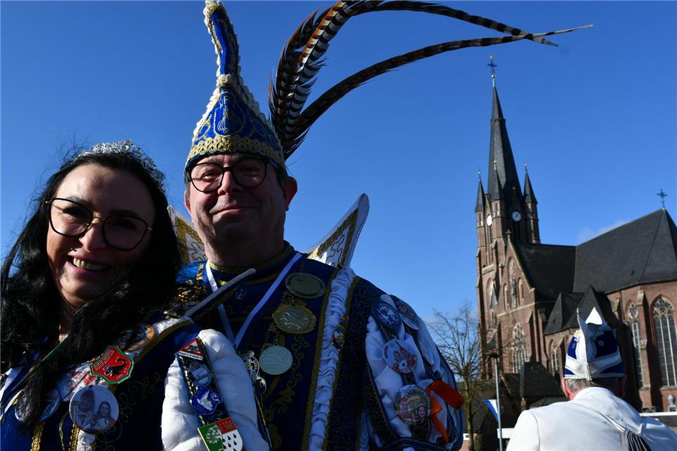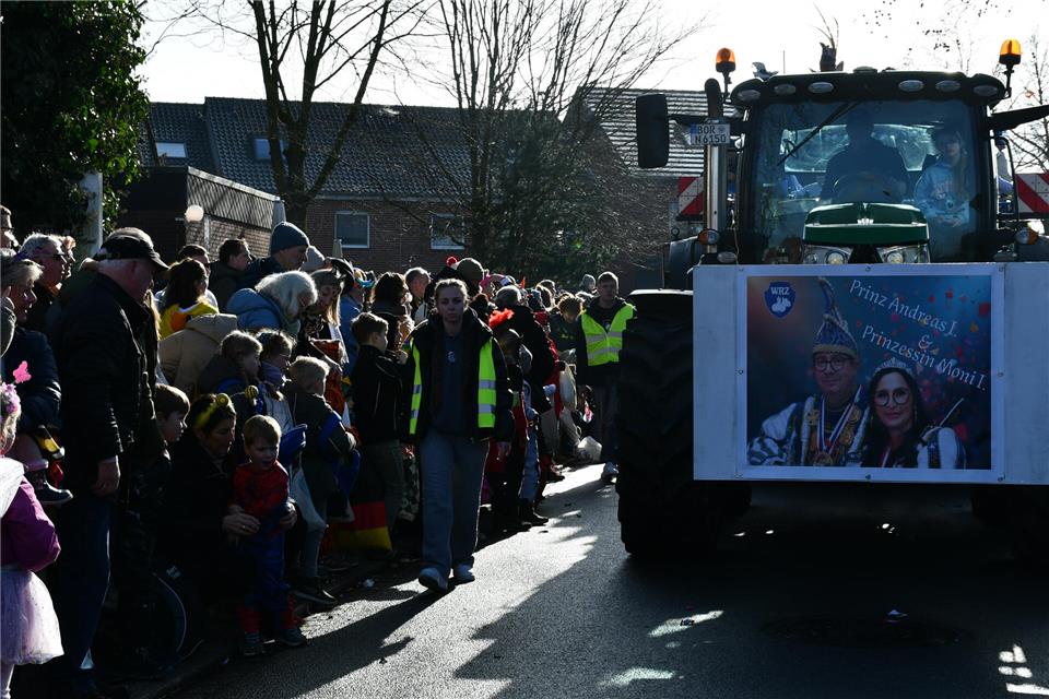 Andreas I. und Moni I. hatten vom hohen Prinzenwagen einen guten Blick auf die ganzen Narren am Wegesrand. „Es ist einfach wunderbar und dieses Wetter macht es perfekt“, sagte Moni I. und rief direkt wieder „Wäske Helau“ und warf die nächsten Kamelle in Richtung der Kinder, die strahlend und lachend die vielen hohen Wagen und bunten Gruppen bestaunten.