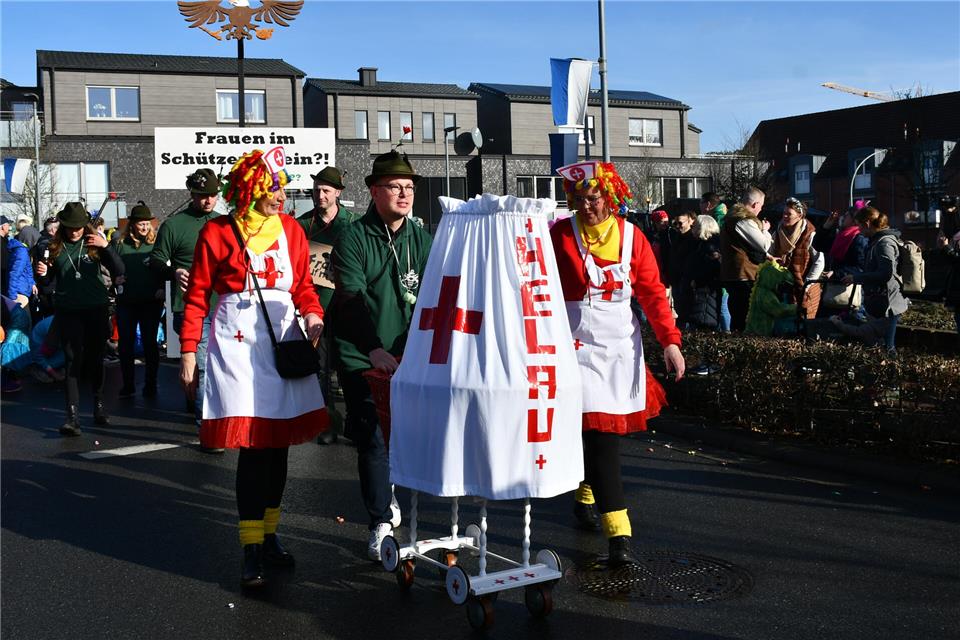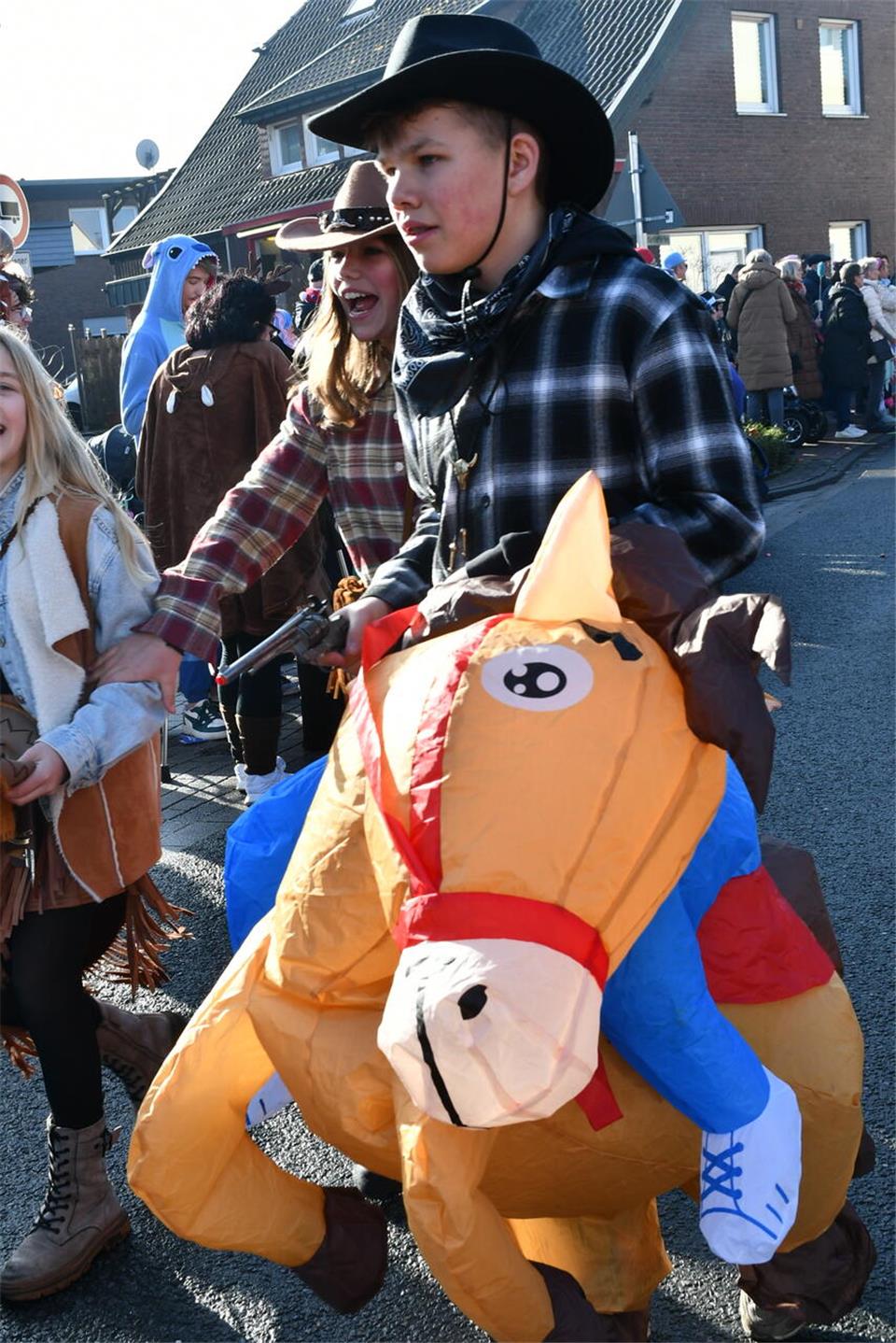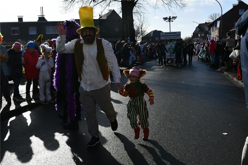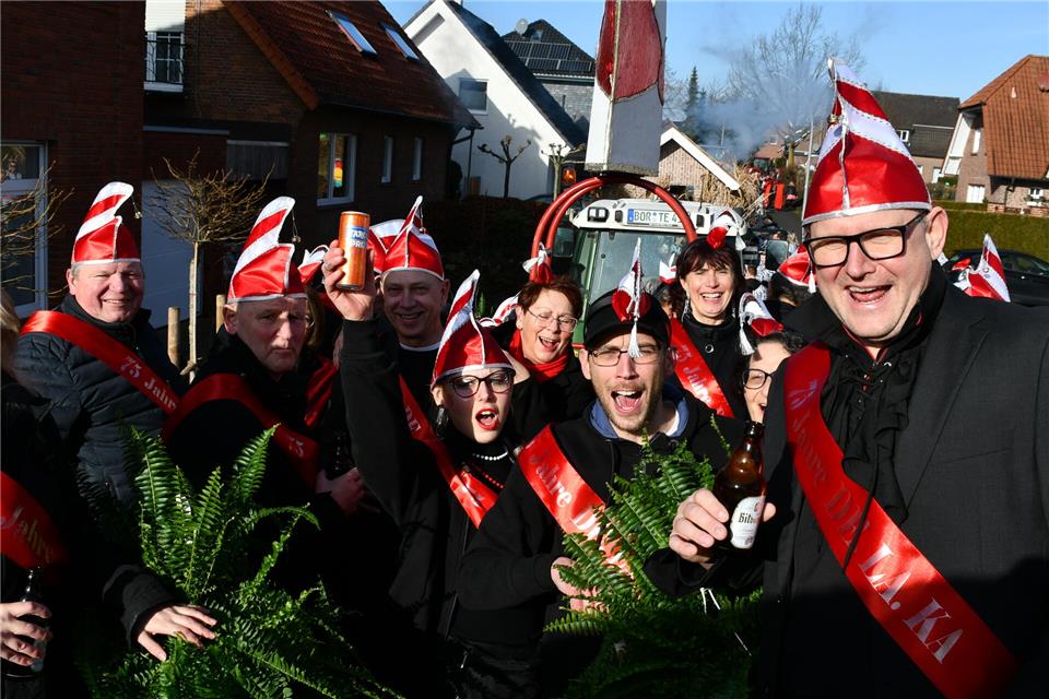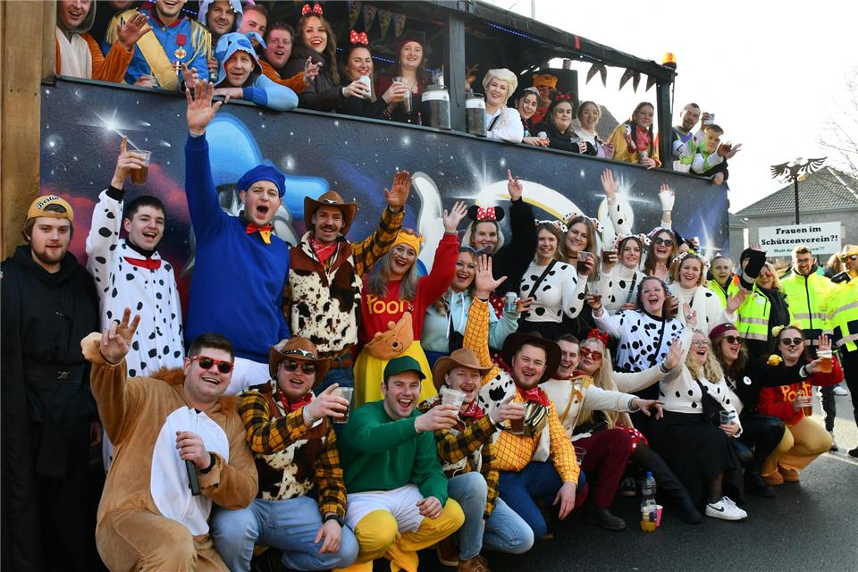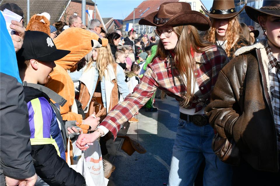WESEKE. Wenn es „Wäske Helau“ heißt, dann kommen die Narren zahlreich ins Sippeldorf und feiern ausgelassen. Musikvereine, Schützenvereine, Nachbarschaften und auch Gruppen aus den Niederlanden stellten die 31 Gruppen, die den Karnevalsumzug von Weseke umfasste. Sogar ein Jungesellinnenabschied mischte mitten im Umzug mit.