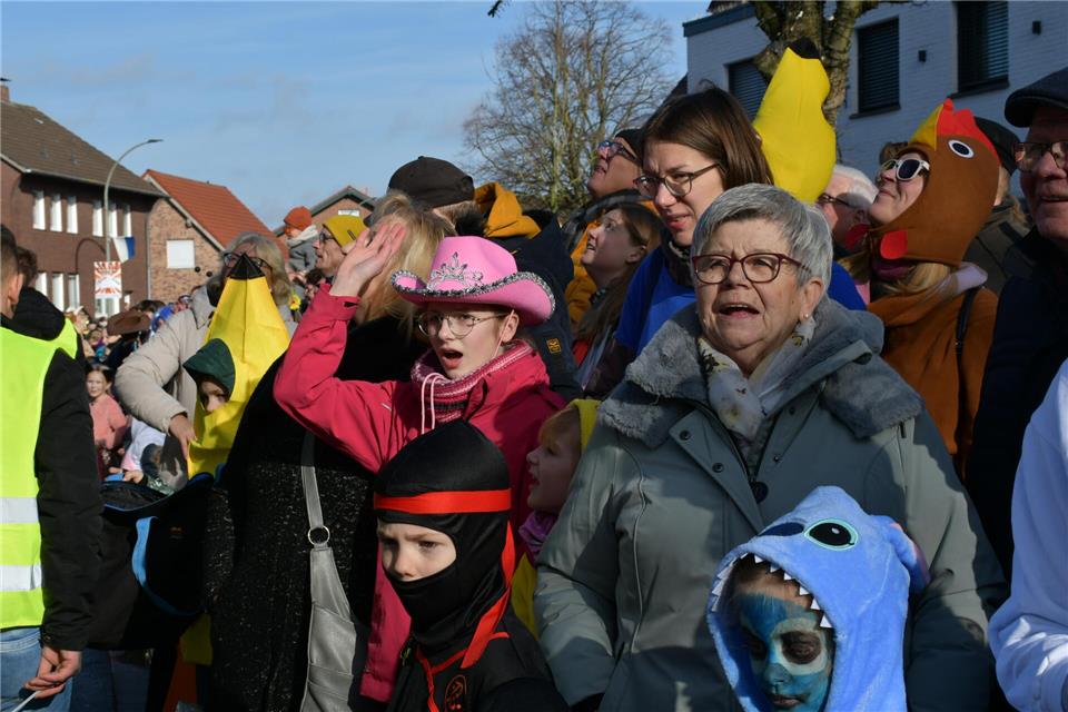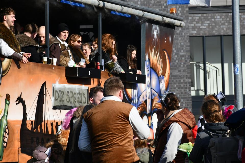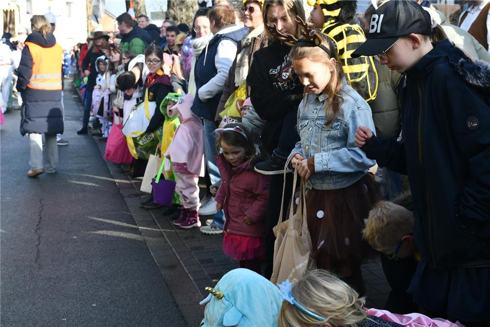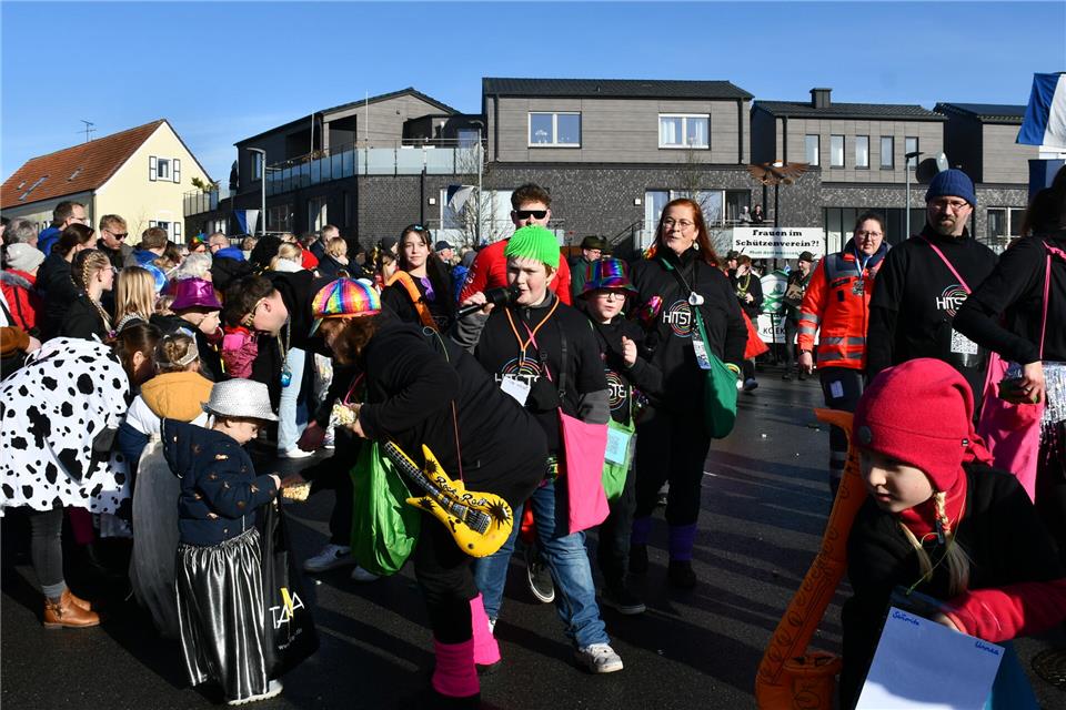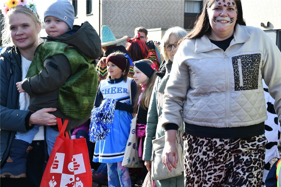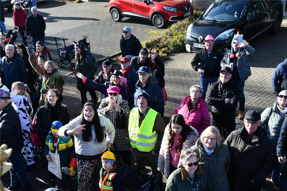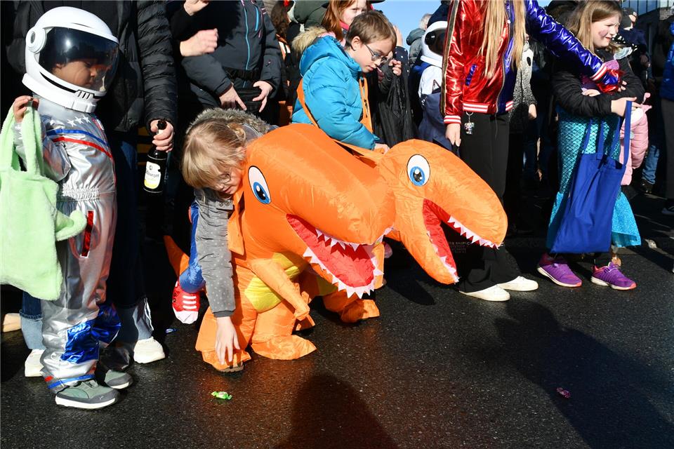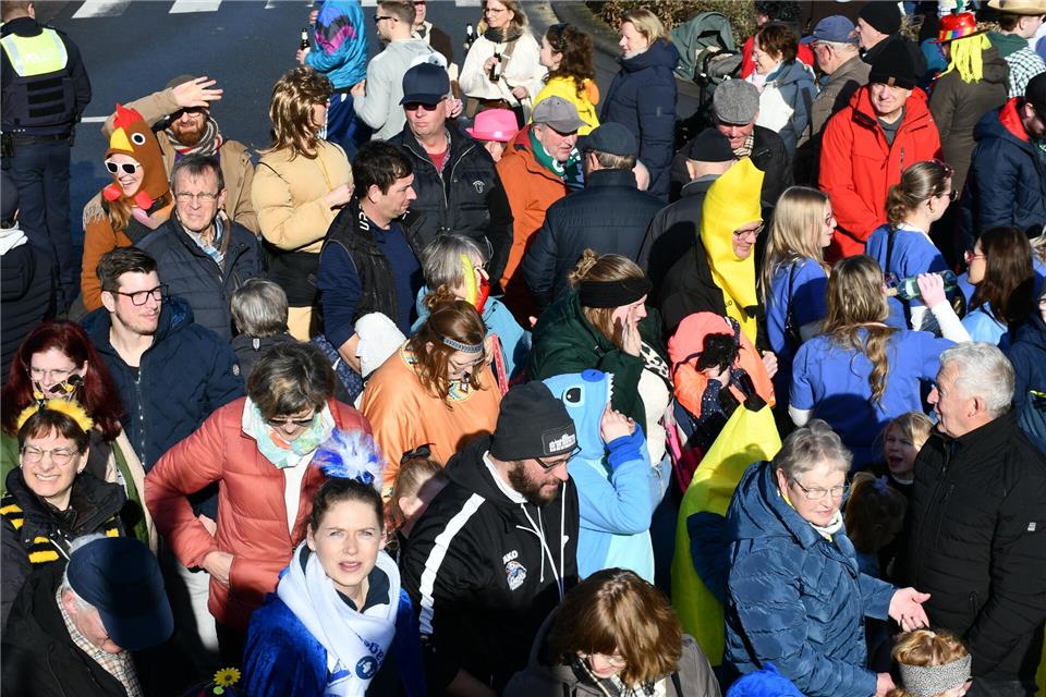 Rund 2500 Menschen füllten den Straßenrand und jubelten den Teilnehmern des Umzugs zu, teilt die Polizei mit, die ein sehr entspanntes karnevalistisches Fest erlebt haben. Dabei konnten die zahlreichen Kinder und Erwachsene eine Lage wärmende lange Unterhosen weglassen. Der Samstag entpuppte sich als sonniger und temperaturtechnisch frühlingshafter Tag, der die zahlreichen Farben der Narren noch einmal mehr leuchten ließen.