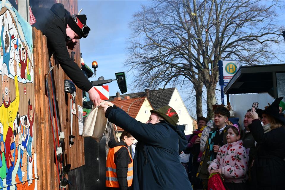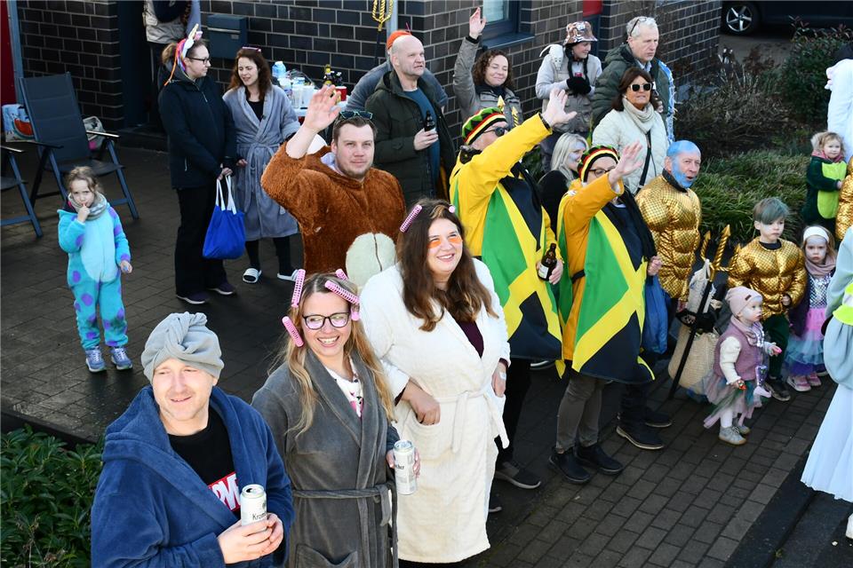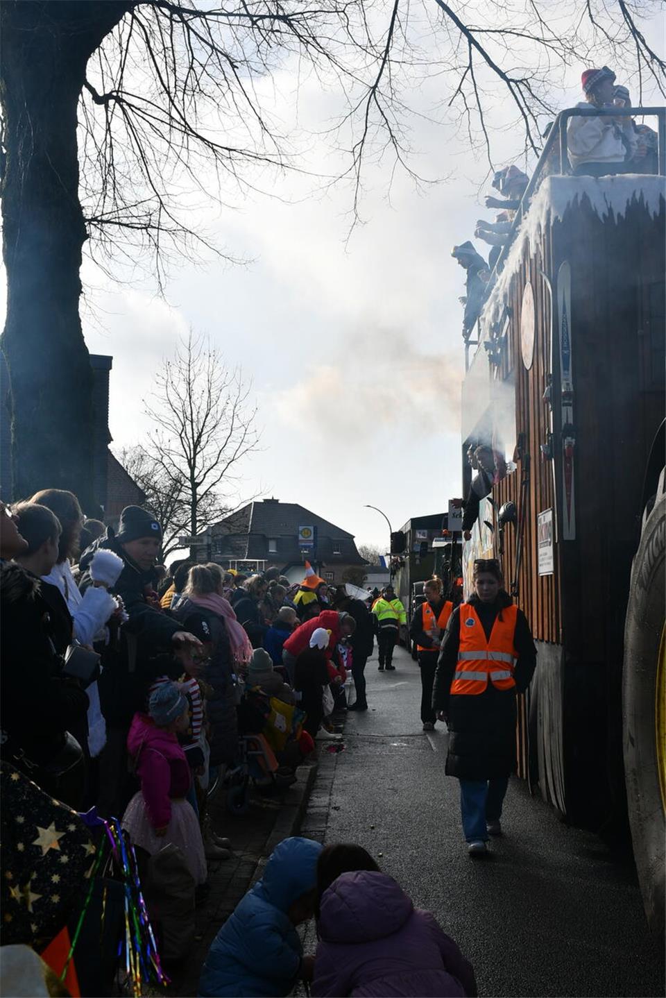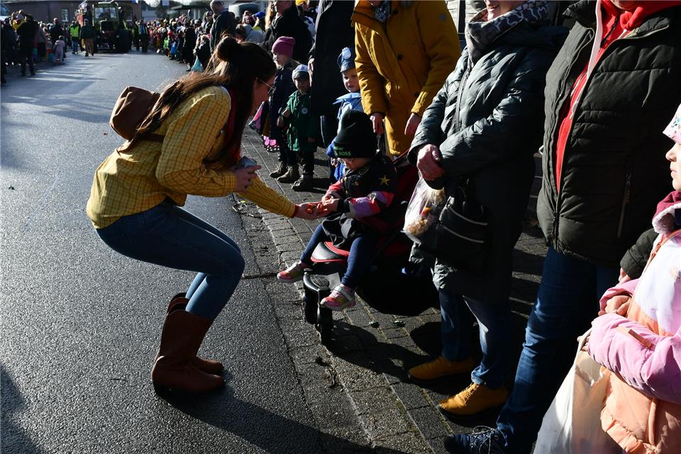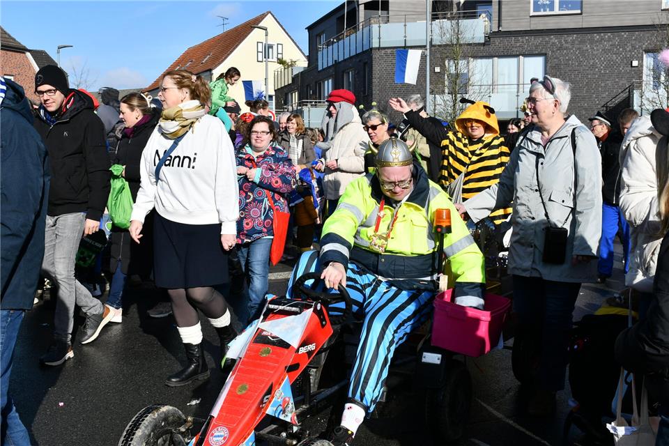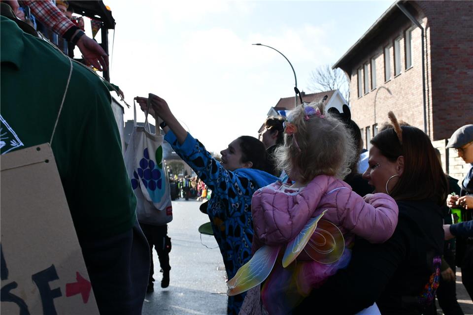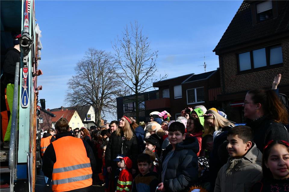 Rund 2500 Menschen füllten den Straßenrand und jubelten den Teilnehmern des Umzugs zu, teilt die Polizei mit, die ein sehr entspanntes karnevalistisches Fest erlebt haben. Dabei konnten die zahlreichen Kinder und Erwachsene eine Lage wärmende lange Unterhosen weglassen. Der Samstag entpuppte sich als sonniger und temperaturtechnisch frühlingshafter Tag, der die zahlreichen Farben der Narren noch einmal mehr leuchten ließen.
